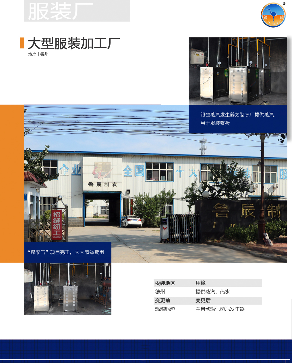 銀鶴蒸汽發(fā)生器為德州服裝廠進行鍋爐房改造